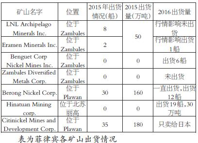 2015年,菲律宾镍企总计出货量在3230.43万吨,折合金属量为41.54万吨,其中上述几家镍企2015年出货量在255.7万吨,占总量7.92%,折合金属量为4.11万吨,占总量9.89%。此外,ZDMC及本格特2015年未有出货记录,本格特今年出货了6船,已经属于多出来的量。贝隆矿影响应该最大,但据了解,目前贝隆矿一直在出矿。CMDC主要是出口日本,对比2015年,其实出口到中国的镍矿的数量并没有减少。当然,如果贝隆矿后期禁止出口的话,影响量大致为100万吨,主要来自巴拉望地区,不到2万吨金属量。