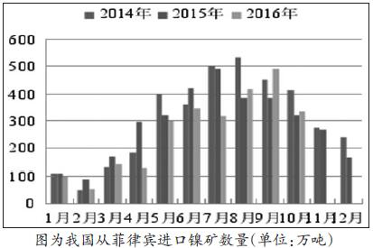 菲律宾镍矿对我国的重要程度如何呢?数据显示,自从2014年1月1日印度尼西亚禁止出口原矿后,菲律宾便成为我国最大的镍矿来源国,基本上垄断了我国的镍矿进口来源。2014年、2015年我国从菲律宾进口的镍矿分别达到3640万吨和3426万吨,占我国镍矿总进口量的76.28%和94.44%。2016年1—10月我国从菲律宾进口镍矿为2621万吨,占我国镍矿总进口量96.57%。菲律宾镍矿基本处于垄断进口地位,这也是为什么菲律宾镍矿一有风吹草动就能让镍价火箭般上涨的重要原因。