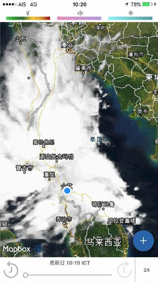 2017年1月9日下午泰南地区云图: