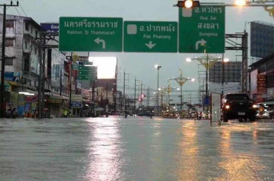 泰南亚洲公路主干道水灾情形: