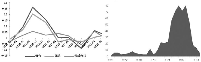 图为股票型组合每期收益与备选基金beta分布