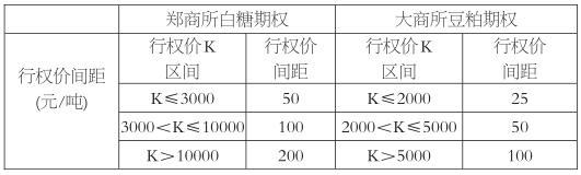 白糖期权:以标的期货前一交易日结算价为基准,按行权价格间距挂出 5个实值期权、1 个平值期权和 5 个虚值期权。