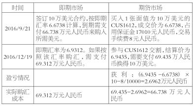 对于未来需要某种货币,如美元,又担心由于美元升值、人民币贬值造成购汇成本上升的投资者,可以在外汇期货市场做一笔买入CUS的交易。待未来购汇时,再卖出平仓。这种操作通常适用于需要偿还美元债务,或者进口需要付美元货款等未来有购汇需求的投资者使用。一个简单的应用案例如下: