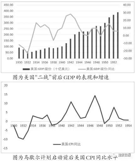 美国经济方面,虽然“二战”期间,美国GDP快速增长,但整体增速不大,并且有下行的趋势;而在“二战”结束后到“马歇尔计划”启动前,受全球经济的拖累,美国经济也没有明显的恢复。