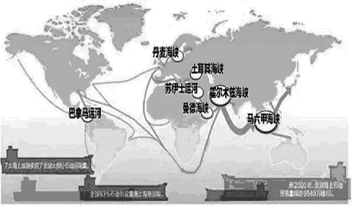 图为国际海运航线上的重要海峡