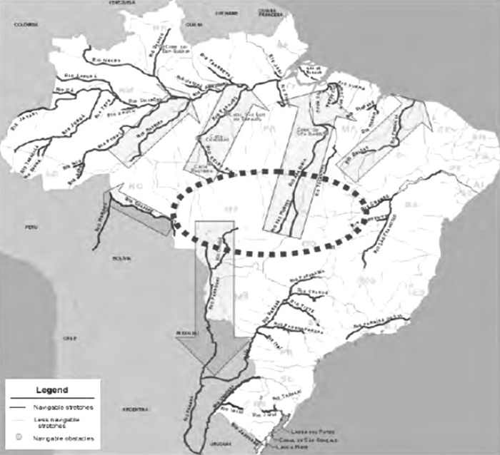 如果解决了马托格罗索州到桑托斯港运输成本高企的问题,那么将有效增强巴西大豆的出口竞争力,也可以间接提高农场价格和农民收入。从巴西河流分布来看,马托格罗索州不像美国玉米带,可以靠贯通美湾的密西西比河连接,因此,指望用低廉的船运代替卡车运输,这条路行不通。既然不能直接解决运费较高的问题,那么可以考虑间接的办法,就是给桑托斯港货物分流。