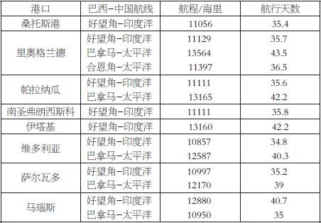 如下表,好望角—印度洋航线中,桑托斯港比传统老港帕拉纳瓜港和里奥格兰德港有航程和运费上的优势,但新港萨尔瓦多港和维多利亚港运费同样低廉。从新港口出货,可以缩短卡车运输距离,从而节省运输成本。