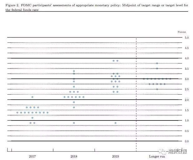 会后发布的最新经济预估显示,16名委员中有11名预计,到2017年底,联邦基金利率--即美联储的指标利率在1.25-1.50%区间是“合适的”水平。这比当前的利率水平高四分之一个百分点。