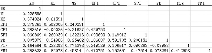 我们发现,特别有趣的是M2和CPI负相关,这符合费里德曼的“如果物价上涨,持有货币意味着损失,人们就会减少货币持有量”的结论。同样,债券收益率越高,人们储蓄的动力越不足。