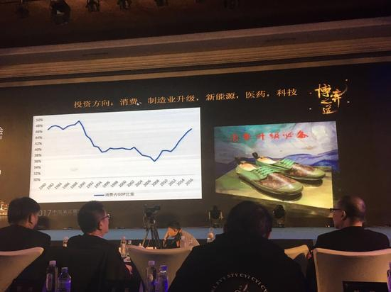 消费不得了,看这图消费占GDP也是起来的,基建投资我都不感兴趣,一定压住消费。消费吃、喝、玩、乐,抓住吃,有白酒、牛奶,我抓白酒,肯定抓茅台,抓最高端的。茅台为什么好?中国人一年要喝掉一千万吨白酒,我只有不到三万吨是茅台,你们抢吧,千分之三。