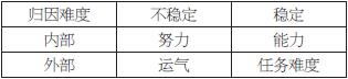 心理学家韦纳经过长期研究,提出了成败归因理论,该理论分为二维、三维归因,限于篇幅,本文仅讨论二维归因,具体见下表: