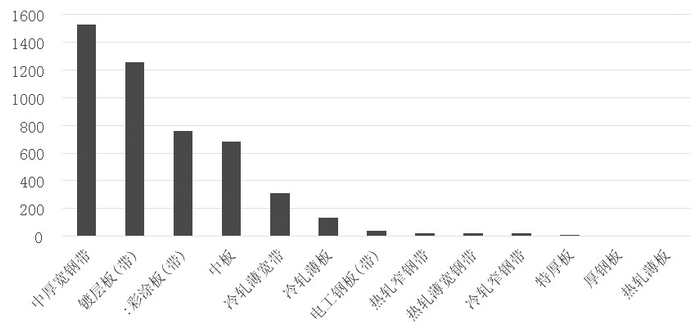 图为2016年板材各品种出口数量(单位:万吨)