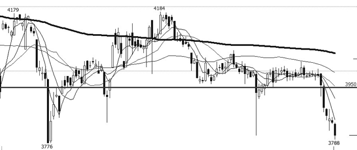 沪银1806合约自上周四放量跌破3950元/千克支撑以来,短线未有止跌迹象,目前距离该合约前低仅10点左右。指标上,均线系统发散向下,乖离率稍大;MACD指标快慢线在0轴下加速下行,柱状线加长;RSI指标在35值空头持仓区运行。周线图上,期价创74周以来收盘价新低。技术指标整体向空头倾斜。综合来看,寻底行情延续。操作上,在反弹不突破3880元/千克的前提下,可以适量做空。