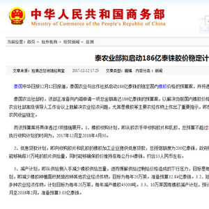 另据泰国中华日报12月12日报道,泰国农业与合作社拟启动186亿泰铢的稳定国内橡胶价格的预算案,并将透过3项措施具体展开。