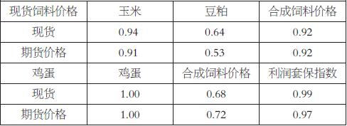通过数据验证(见下表),鸡蛋现货价格与期货价格,对于合成的饲料价格相关系数在0.7左右,而鸡蛋与鸡蛋利润套保指数的相关系数在0.9以上,代表鸡蛋价格与利润套保指数与合成饲料价格呈现高度正相关,因此利用鸡蛋利润套保指数对鸡蛋进行套期保值是很好的方式。