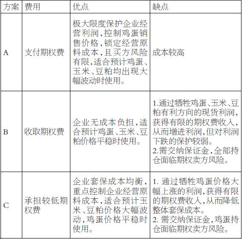 (A)购买10000吨鸡蛋看跌期权,购买17250吨玉米看涨期权,购买5750吨豆粕看涨期权。