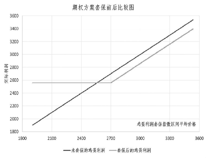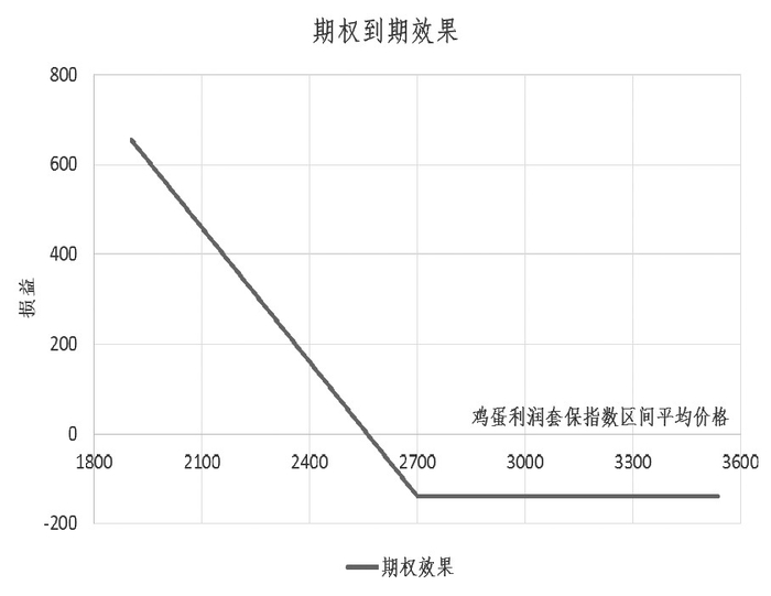 根据鸡蛋利润指数场外期权方案,上述湖北企业与海通期货建立鸡蛋利润套保指数场外期权合作关系,期权自2016年11月28日生效,于2017年4月27日到期,为企业700吨鸡蛋产量进行5个月的套期保值,期权行权价为2700元/吨。