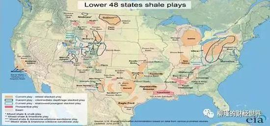 上图是美国48州的页岩产地分布,其三分之二以上的产地来自Eagle Ford、Bakken和Permian三个区块,而不同颜色标识了页岩油气开采的深浅程度、而深浅程度直接决定了开采成本的高低。每当国际原油价格低的时候美国页岩油开采商就开浅层区、压低成本,原油价格高就开深层区、均衡成本,因此生存韧性非常强、价格弹性非常大,远非常规油气资源可比。