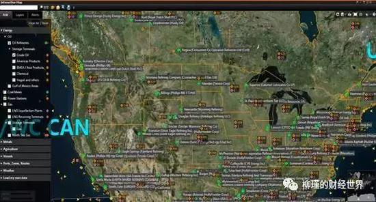 这是美国的原油炼厂、仓库和管道分布图(上图),我们看到横贯美国南北的原油运输通道的中心就是以库欣,其库存是美国库存的风向标,而美国南北向的运输通道保证北部加拿大的油砂能够运抵南部的墨西哥湾经大西洋出口。这包括传统油气资源和非传统油气资源的开采、冶炼、库存和运输的分布图。