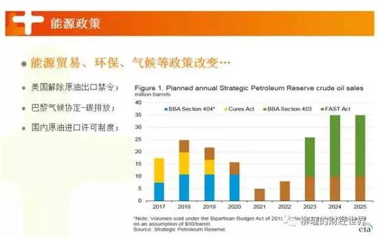 在宏观要素中的另外一个因素是能源政策和贸易环保政策。首先是美元解除原油出口禁令。美国2017年日均出口量大概是60万桶/日,对于全球贸易量交易规模9800万桶/日来说,不是很大的数量,至少在2017和2018年不会对原油价格造成决定性影响,但是这也是下行压力之一。