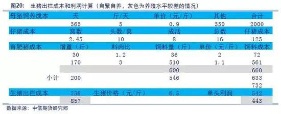 4)自繁自养利润:按现在生猪价格 6.5 元/斤计算,一头猪的养殖利润为 6.5 元/斤*200 斤-成本 865=435 元,利润率50%。