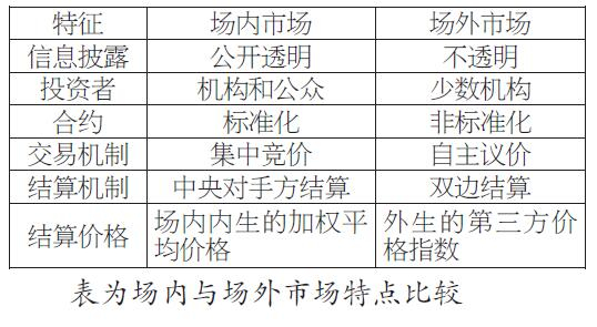 六是结算价格外生机制。与场内市场产品不同,场外市场的结算价格不是市场内生的,大多是根据现货市场提供的第三方报价体系,或借助期货市场价格(如ICE Clear U.S.等)来形成场外市场的结算价格。