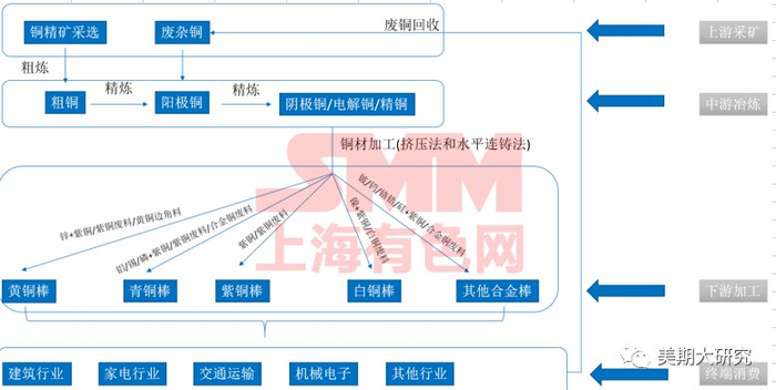 铜棒产业链结构介绍作为电解铜下游行业消费中的一个重要组成部分,铜棒在2018年前二季度的铜消费占比中占到了11%,是铜消费领域的重要组成部分。