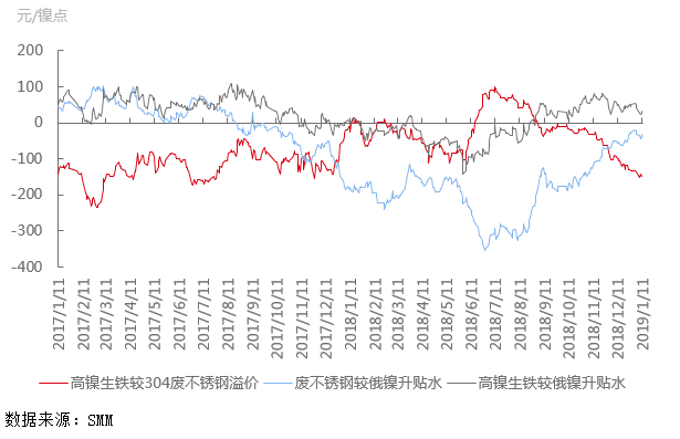 第三,新增产能投放的推迟,按照市场原预期,2019年春节前将有不少新增产能投入市场。按照最新调研情况来看,国内方面,华东某大型不锈钢厂的新增产能投放再次后延,据SMM了解,其第一条生产线,1月将会出铁,另三条已建成,另四条建设进度较为缓慢,与预期的2018年10月投产相差较远。印尼方面,金川原计划2月投放的一条新产能也将延后,德龙农历春节前投放满12条生产线的原投放计划,或也将推迟。综合来看,新增产能投放的进度不如预期,也是导致春节前高镍生铁较为紧缺的因素之一。