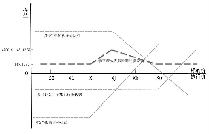 通过上述分析可以发现,当i<j<k时,如果出现λPi+(1-λ)Pk<Pj的情况,那么到期时不需要管标的价格如何变动,只要构建买低买高卖中的修正蝶式差价策略就能够获得无风险收益。