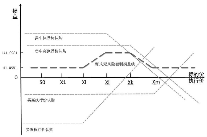 所以,当i<j<k<m时,如果出现Pi+Pm<Pj+Pk,那么通过上文的各种情况分析,同样不需要在意标的价格如何变动,只要构建铁鹰式贷方策略就能够获得无风险收益。