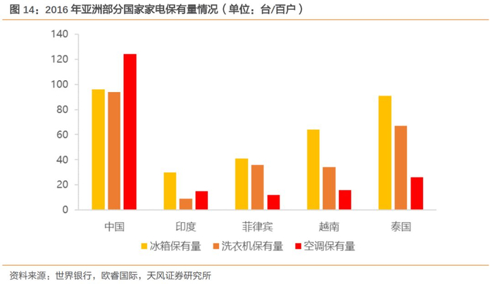 对比着来看,作为较易观察到品牌的家电品类空调来看,也能感受到类似的情况,即大金品牌在越南的市占率较高。同样地,在印度当地,除了日资品牌之外,韩系品牌诸如LG也较为常见,偶见美的格力等国内品牌。这么看来,能在国内证明自身质量优势的三大白电龙头,假以时日,在东南亚当地的未来发展潜力仍有较大空间。