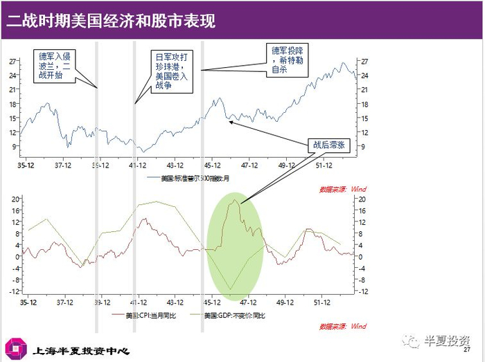 1,战争初期一方面有财政刺激拉到企业盈利的效果,一方面推推高通胀和利率,抑制股市估值水平。