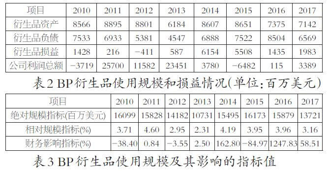 表2对BP公司2010—2017年的衍生品交易数据进行了整理,表3则根据指标计算公式对其交易情况进行了指标数值计算。