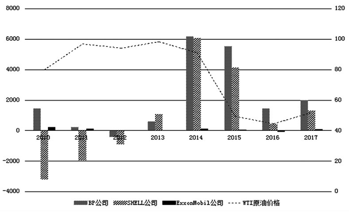 图2 2009—2017年三大国际石油公司年利润走势与国际油价走势对比