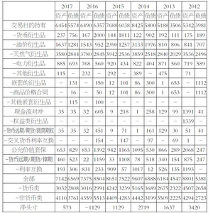 衍生工具合约有关的收入和损失根据交易的性质和所涉及的合同类型计入损益表中。BP公司2012—2017年使用衍生品情况的相关情况如表1所示。
