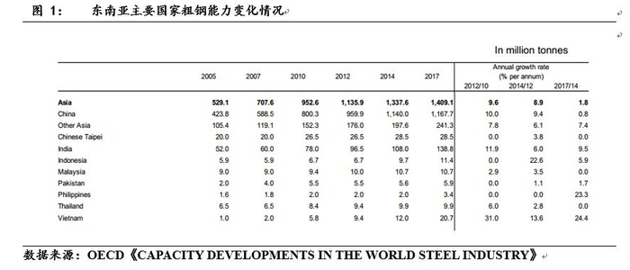 由此可见,国内行政化去产能的持续推进将对河钢的运作造成一定程度的制度化压力。 然而,在钢铁工业运行趋于稳定的情况下,寻求区域性,结构性机遇是企业持续发展的内在动力。东南亚地区是未来全球钢铁需求增长的主要动力引擎。根据世界钢协数据显示,2017年,东盟主要国家(越南、泰国、印尼、马来西亚、菲律宾、新加坡及缅甸)粗钢产量共计2636万吨,表观消费量为8785万吨,净进口量高达6149万吨,粗钢自给率仅为30%左右。