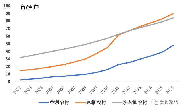 这样来看,国家补贴政策对刺激消费,提升产品结构有有效的推动作用,但是也会产生一些副作用。就短期而言,政策补贴让所有的家电厂商和大多数消费者受益,但补贴政策结束之后,情况就有些不同了。对空调行业而言,补贴政策刺激了农村市场的需求,更像是一个催化剂,因为空调在农村的普及还远未完成,但对冰箱子行业就不太一样了,家电下乡使冰箱的农村保有量快速上升,补贴政策结束后,行业增速从高位明显下滑,后来几年中对行业形成了明显的压力。