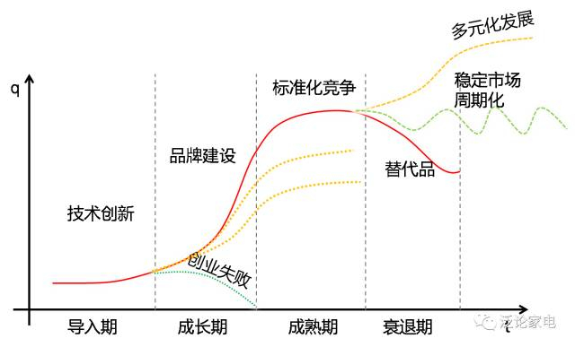 例如,我们回顾空调行业发展的历程,在20世纪90年代,空调在中国市场刚刚起步,产品供不应求,产能是制约当时企业发展的最大瓶颈,而资本投入和技术条件又对产能形成提出挑战。我们能够观察到的是企业在这个环境下的主要工作就是看谁能先扩产,把产品投放市场,竞争的焦点就是厂房和生产线。如今年空调产能几千万台的格力电器在发展初期就只能在一个年产能两万的破烂厂房里,加班加点组装出12万台空调而已(参见朱江洪自传)。这个问题在几年内被解决,随着行业的发展,良好的现金流和持续的产能投入,使得产能扩张不再是问题,行业从导入期进入到成长期,竞争的焦点从产能向品质(品控)转移。从竞争行为上看,进一步扩产并不能带来额外的优势了,卖方市场逐步向买方市场转变——以前有空调就不愁卖,后来是有好空调就不愁卖。这一字之差,代表了一个行业的转折点。如果我们能够乘坐时光机回到2004年,看到当时轰轰烈烈的价格战和利润薄的像刀片一样的家电行业,我们一定会感到恐惧,因为市场参与者为了降低库存而一起选择低价倾销的行为无异于举刀自刎——无论价格如何降,空调并不会因此多卖出几台。但就在此时,格力电器在大卖场里给消费者拆空调看“心脏”的行动事后证明是这家公司真正俘获消费者真心的定音之锤。