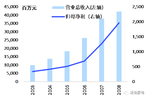 图. 格力电器收入/利润2003年后加速增长