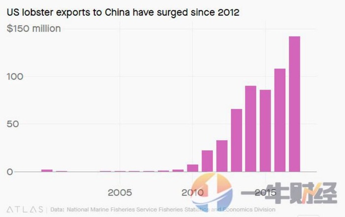 下面是美国出口到中国的龙虾增速,这两年更高,看个大概吧。