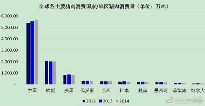 引用李迅雷研报中的数据,中国人口占全球19%,消费掉全球50%的猪肉,人均猪肉消费量是全球人均的2.6倍。2017年,全球共养了12亿多头猪,中国包揽了6.9亿头。