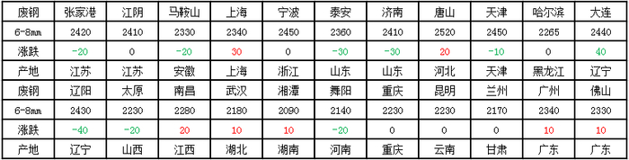 江苏废钢: 本周江苏废钢价格整体主稳个调,市场成交恢复常态;现本省主流钢厂含税采购价最高2650-2840元/吨。现市场不含税:重废2380-2480元/吨,中废2050-2150元/吨,小废1850-1950元/吨,镀锌料2150-2280元/吨,硅钢片2280-2350元/吨,铁屑1920-2030元/吨;铸造用钢板新料含税2840-2940元/吨.本地热点料型钢筋切粒主流2450-2500元/吨,破碎料2220-2300元/吨,碎钢刨花1850-1950元/吨个高2000元/吨。具体来看,目前本省废钢多数处高位,而电炉厂利润处于盈亏边缘拉涨意愿不强,多根据自身需求窄幅调整。钢厂方面,东方润安,淮钢,东南,亚新,金虹,华润,秦邮等厂家本周累计涨跌均在30-50左右,市场码头基地节后回收到货不佳,多数看涨后市采购价格偏涨调整为主。据本地一位资深贸易商反馈:在钢企盈利没有明显改善之前,废钢市场整体变动不大,但不排除主导钢企会选择降低原料价格来保证足够利润,虽今日沙钢上旬建-材调涨50对市场有所提振,但目前下游销售仍未有明显改观,短期利润难以企升, 预计下周江苏省废钢稳中盘整运行为主。