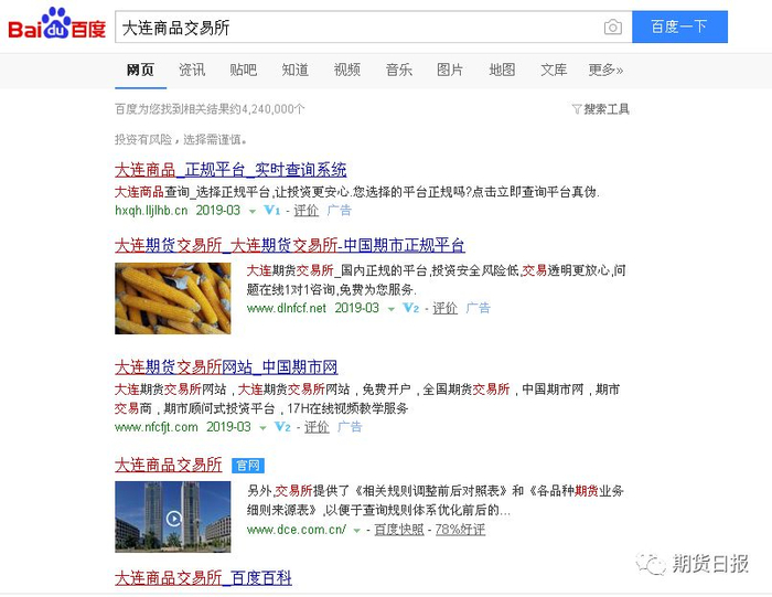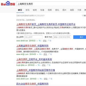 对于“度娘”的显示结果,小明和“吃瓜群众”早已是心知肚明,谁给钱就把谁的名次往前挂、往前排。反正点击一下,财源滚滚来,“度娘”乐意干这事!内地四大期货交易所估计是没有给“度娘”投点费用啥的,结果排名只能排在上述各“期货平台”财神爷的后面!