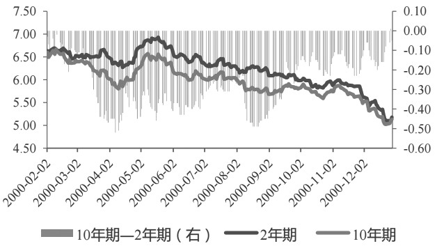 第三次收益率曲线倒挂与第二次相类似,即处在收益率整体下行阶段且10年期美债收益率在下跌时,下跌幅度更大;上涨时,幅度不及2年期的影响,故2000年2月2日到2000年12月28日期间,美债长短期限利差大都小于零。