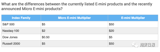 据了解,本次CME推出的微型E迷你合约与现有的E迷你合约的主要不同之处在于合约乘数的不同,仅为现有E迷你合约的十分之一。