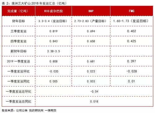 四大矿山产量增加空间也已不多,矿难前2018年四大矿山产量预计为11.65亿吨,较2017年约增加0.37亿吨,而2019年四大矿山产量增量则为0.16亿吨。其中,RioTinto和FMG产能基本没有太大增长空间;根据BHP财报年度计划,预计其2019年将提供0.06亿吨的增量。
