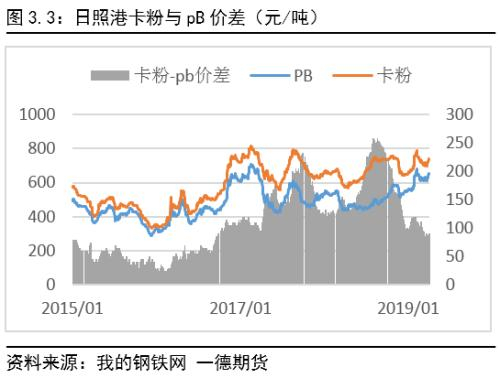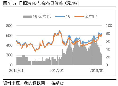 而以PB,金布巴为代表的澳洲中品矿,库存处于中性位置,矛盾并不冲突,在弱势的卡粉和强势的低品矿之间震荡。。同时,在高中低品价差缩减的大趋势下,pb与金布巴价差也大幅缩减。