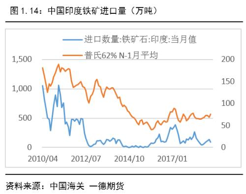 印度铁矿出口量一直以来跟普氏价格呈良好的正比关系。但受行政干预影响,果阿邦自去年2月就处于停产状态,同时电子平台交易也被停止。中国对印度矿石进口量也大幅下滑。伴随着海运铁矿石价格的上涨,印度铁矿出口量开始回升,但增加幅度受禁矿令影响仍将有限。