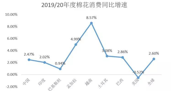 全球棉花消费量2742万吨,同比增加70万吨,增幅2.6%;