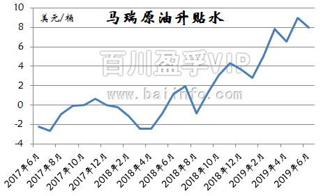 成本面:自2018年第四季度,马瑞油贴水就大幅上涨,进入2019年,贴水持续攀升,马瑞油贴水从1月的2.8063美元/桶上涨至5月份的9.0157美元/吨,代理费也从1月初的2.5美元/桶上涨至3.05美元/桶。中燃油炼厂以及部分加工马瑞油的地炼成本持续高位,支撑沥青价格坚挺。